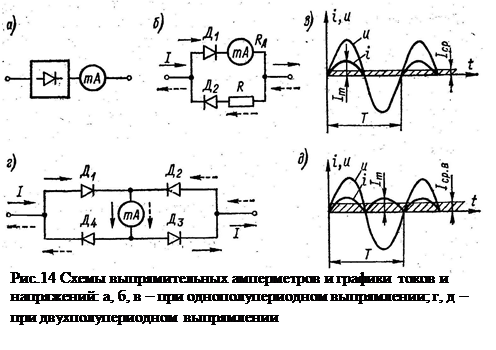 проходит пульсирующий ток i (рис.14, в), а показания миллиампертметра