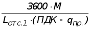 М - расход вредного вещества (7,5 . 10-3 мг/с) ; Lотс.1 - расход воздуха отсосом при КТ = 1 ; ПДК - предельно-допустимая концентрация вредного вещес- тва в воздухе рабочей зоны (0,01 мг/м3) ; qпр. - концентрация вредного вещества в приточном возду- хе, мг/м3 . Lотс.1 = L0 . КП . КВ = 360 . 0,11 . 1,03 = 40,8 м3/ч .