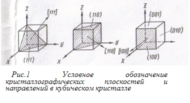 кристаллографических плоскостей, обозначаемых индексами Миллера, например