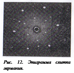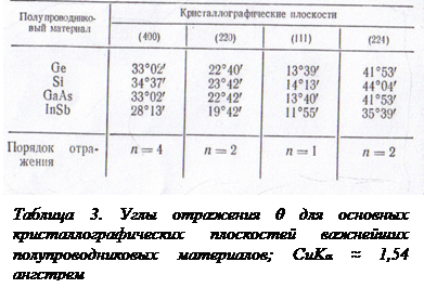 ориентацию слитка: выявить расположение основных кристаллографических плоскостей. Кроме того, иногда необходимо проверить ориентацию плоскостей пластин после резки, шлифовки или полировки. Монокристаллы германия и кремния имеют