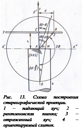 индексами Миллера обозначения плоскостей записывают в круглых скобках. Три главные плоскости в кубическом Методы ориентации полупроводниковых пластинПоиск заданной кристаллографической плоскости, определение угла разориентации поверхности торца слитка относительно неё и выведение поверхности отрезаемых от слитка пластин в заданную плоскость с точностью, как правило, не более 1° (для некоторых типов приборов 30¢) производится на специальном оборудовании оптическим или рентгеновским методами, а также для некоторых случаев будут рассмотрены ещё два метода: метод изломов и метод Лауэ. Оптический метод ориентации является наиболее простым, не требует дорогостоящего, сложного оборудования. Он заключается в следующем. При травлении монокристалла вследствие неодинаковой скорости растворения полупроводникового материала по различным кристаллографическим направлениям образуются фигуры травления, которые имеют вид углублений с правильными гранями. Поэтому отраженный от образца слабо расходящийся пучок света образует на экране световую фигуру, по положению которой можно оценить величину отклонения кристаллографической плоскости от плоскости торца слитка, при этом отражающая плоскость всегда совпадает с кристаллографической плоскостью (111). Отклонение реальной поверхности торца слитка от кристаллографической плоскости (111) приводит к отклонению отраженного луча на экране на некоторое расстояние d (рис. 3,а) характеризующееся некоторым углом a реальной поверхности шлифа от плоскости (111).