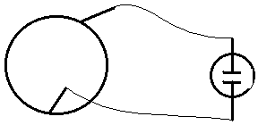 Рис. 4. Схема опыта Вильсона К металлическим обкладкам цилиндра присоединялся электрометр, который показывал, что при вращении цилиндра между обкладками появляется напряжение». Как объясняет У.И.Франкфурт, «внутри цилиндра возникает радиально направленное электрическое поле. В металлическом цилиндре при этом происходит перемещение электронов проводимости к внешней поверхности цилиндра. Электроны проводимости перемещаются до тех пор, пока заряд на внешней поверхности цилиндра не создаст поле, которое не уравновесит силу Лоренца, действующую на электроны находящиеся в цилиндре... Между внешней и внутренней поверхностями цилиндра возникает разность потенциалов и при соединении проводником в нем пойдет ток. Вильсон экспериментально подтвердил, что теория Герца, исходящая из полного увлечения эфира, не соответствует действительности...», т.к. величина заряда оказывается пропорциональной |ε–1| а не ε, как это следует из теории Герца. По мнению Л.И.Мандельштама, «Опыт Вильсона также можно схематизировать, заменив вращение поступательным движением. Диэлектрик движется между обкладками и пронизывается магнитным полем, перпендикулярным к плоскости рисунка (рис.5). Конденсатор... шунтируется электрометром...».