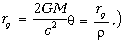 Еще один эффект, предсказанный Эйнштейном на заре ОТО, — отклонение луча света в поле Солнца. Его величину нетрудно оценить следующим образом. Если характерное, прицельное, расстояние луча от Солнца равно ρ , то радиальное ускорение составляет GM/ρ2 где G — ньютоновская гравитационная постоянная, а M — масса Солнца. За характерное время пролета ρ/cрадиальная компонента скорости фотона изменится на GM/(ρc) и угол отклонения составит соответственно Удобно ввести часто используемую в ОТО характеристику массивного тела, так называемый гравитационный радиус: