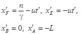 xF=n, xE=0, xB=βct, xA=-n+βct. (1) Поскільки L=nγ, то по умові задачі γ=2, β=