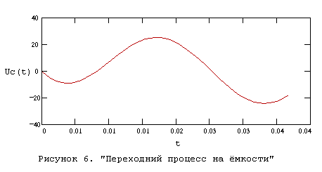 Переходный процесс на конденсаторе при гармоническом воздействии изображён на рисунке 6.