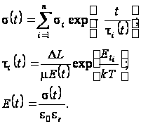Предэкспоненциальный множитель определяет время пролета электрона через барьер, второй обратно пропорционален вероятности термической активации носителя. Кривые токов ТСД полученные в работах обнаруживают наличие трех максимумов, соответствующих релаксации инжектированного заряда, поэтому суммарное изменение величины гомозаряда во времени представляется суперпозицией релаксационных процессов разрядки всех центров захвата и выражается как