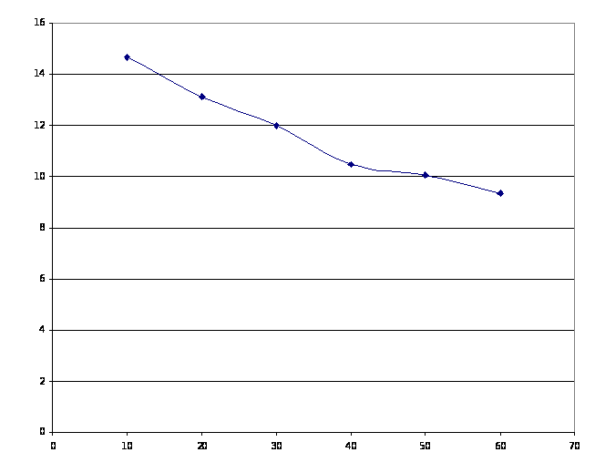 Рисунок 3.6. 3.6.3.Влияние продолжительности процесса электретирования на плотность заряда электрета. Влияние времени электретирования исследовалось в интервале от 1 мин до 20 мин, график зависимости представлен на рис. 3.7. Из графика видно, что максимальное значение начального заряда наблюдается при tэ= 1 мин. При изменении времени выдержки с 1 мин до 5 мин, как видно из графика , заряд электретной мембраны растет и достигает насыщения при t’=5 мин. Превышение указанного времени электретирования вызывает спад заряда. Такой характер зависимости объясняется сильным разогревом пленки под действием плазмы, что приводит к значительным структурным изменениям. Визуальный осмотр показывает, что изменение цвета пленки при длительности выдержки превышающей 5 мин , а при tэ более 20 мин наступает полное разрушение образца. Влияние времени электретирования Т мин. на плотность заряда электрета s*105 Кл*м2.