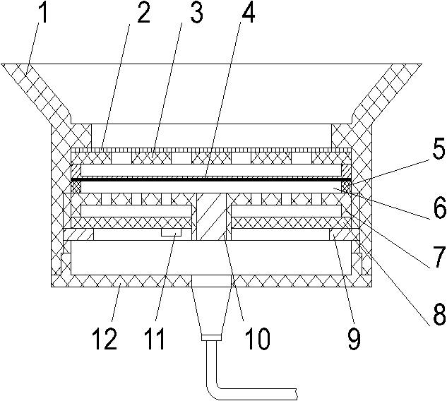 Схематическая конструкция приемника звукового давления емкостного типа.