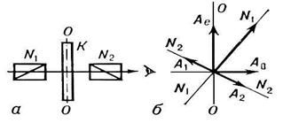 ний, а плоскость, содержащую луч и магнитный вектор - плоскостью поляризации. Плоскополяризованный свет можно получить из естественного света с помощью приборов, называемых поляризаторами. Эти приборы свободно пропускают колебания, параллельные плоскости, которую называют плоскостью поляризатора, и полностью задерживают колебания, перпендикулярные к этой плоскости.