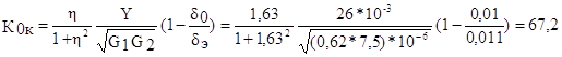 Âû÷èñëèì ïàðàìåòðû ýêâèâàëåíòíîé ñõåìû êàñêàäà: G1=gâûõ+g12+gcõ=4,5+3+0=7,5ìêÑèì è G2=gâõ+gcõ=0,21*10-3+(7500)-1+(3600)-1=0,62 ìêÑèì. Ïîñëå ýòîãî ðàññ÷èòàåì ìàêñèìàëüíî âîçìîæíûé êîýôôèöèåíò óñèëåíèÿ êàñêàäà:
