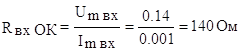 êîýôôèöèåíò ãàðìîíèê âûõîäíîãî êàñêàäà áóäåò ðàâåí: Ïîëó÷åííàÿ âåëè÷èíà ìåíüøå äîïóñòèìîé äëÿ ïðè¸ìíèêà, ïîýòîìó âûáðàííûé òèï òðàíçèñòîðà ïðèãîäåí äëÿ èñïîëüçîâàíèÿ â âûõîäíîì êàñêàäà. Àìïëèòóäó âõîäíîãî íàïðÿæåíèå ïðè íîðìàëüíîì êîýôôèöèåíòå ìîäóëÿöèè âû÷èñëèì ïî ôîðìóëå: Umâõ=0,3Umí=0,3*0,06=0,018Â. Äëÿ îïðåäåëåíèÿ âõîäíîãî ñîïðîòèâëåíèÿ êàñêàäà ïðîâîäèì êàñàòåëüíóþ êî âõîäíîé õàðàêòåðèñòèêå â ðàáî÷åé òî÷êå À. Îíà îòñåêàåò ïî àáñöèññ â ìàñøòàáå íàïðÿæåíèÿ âåëè÷èíó 0,35-0,21=0,14Â, à ïî îñè îðäèíàò â ìàñøòàáå òîêà 1,0-0,0=1,0 ìÀ. Ïîäñòàâëÿÿ ïîëó÷åííûå