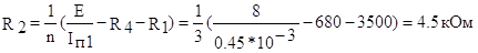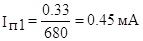 Ïðèìåì ñîïðîòèâëåíèÿ R4=680Îì è R1=3.5êÎì. Òîãäà äëÿ ñîõðàíåíèÿ èñõîäíîãî ñìåùåíèÿ íà áàçàõ ðåãóëèðóåìûõ òðàíçèñòîðîâ íàéä¸ì ñèëó òîêà Iï1, ïðîòåêàþùåãî ÷åðåç ñîïðîòèâëåíèå R4:
