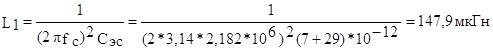 ñõåìû: 7.¨ìêîñòü êîíòóðà: Ñ2=Ñý-Ñâûõ.ïð=174-70=104 ïÔ. Âûáåðåì Ñ2=100 ïÔ. 8.Îïðåäåëèì äåéñòâèòåëüíóþ ýêâèâàëåíòíóþ ¸ìêîñòü ñõåìû: Cý’=Ñ2+Ñâûõ.ïð=100+70=170 ïÔ. 9.Èíäóêòèâíîñòü êîíòóðà: 10.Äåñòâèòåëüíîå õàðàêòåðèñòè÷åñêîå ñîïðîòèâëåíèå: