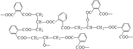 → ∙∙∙–O–CH2–CH2–O–OC– –CO–∙∙∙ Глифталевые смолы получаются при поликонденсации глицерина и фталевой кислоты. Наличие трех гидроксильных групп дает возможность для построения трехмерного полимера: