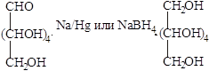 СН – ОСОС15Н31 → Стеариновая кислота Стеарин СН2 – ОСОС15Н31 Пальмитиновая кислота В щелочной среде наряду с глицерином получают соли этих кислот – мыла. Очень важной реакцией, имеющей промышленное значение, является реакция гидрогенизации жиров – превращение жидких жиров в твердые. Сущность этой реакции состоит в присоединения водорода к непредельным кислотам и превращение их в предельные (Ni, 200°C, 15 кгс/см²): СН2 – ОСОС17Н35 СН2 – ОСОС17Н35 СН – ОСОС15Н31 + 6Н2 = СН – ОСОС17Н35 СН2 – ОСОС15Н31 СН2 – ОСОС17Н35 Лучшие сорта гидрированного жира используются для получения маргарина. Маргарин представляет собой эмульсию гидрированного жира, животного жира (говяжьего) или растительного масла в молоке. По виду и запаху продукт напоминает сливочное масло: для придания желтого цвета в него добавляют яичный желток, а для придания характерного запаха – дикетон диацетил СН3СОСОСН3. Углеводы, их классификация. Моносахариды. Глюкоза, ее строение, химические свойства (реакция окисления и восстановления). Роль в природе. Сахароза, ее гидролизВпервые глюкоза была получена в 1811 г. русским химиком Г.З.Кирхгофом при гидролизе крахмала. В конце 60-х годов прошлого столетия А.А.Колли доказал, что в молекуле глюкозы имеется пять гидроксильных групп. Шестой атом кислорода, очевидно, должен входить в состав альдегидной группы, поскольку глюкоза дает многие качественные реакции на альдегидную группу – окисляется оксидом серебра (1), присоединяет синильную кислоту (4): Химические свойства: 1.