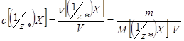 Молярная концентрация выражается в моль/л. Молярная концентрация вещества эквивалента (1/z*)X в растворе c[(1/z*)X] – отношение количества растворенного вещества эквивалента (1/z*)X к объему раствора: