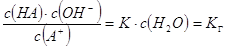 Для гидролиза по аниону в общем виде А– + НОН ↔ НА + ОН– , согласно закону действующих масс, приближенно справедливо