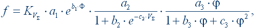 где KV∑ – поправочный коэффициент, учитывающий влияние суммарных скоростей качения; a1, a2, a3, b1, b2, b3, c1, c2, c3 – коэффициенты; Ф – фактор верчения; φ – относительная скорость геометрического скольжения. Для минерального масла коэффициент a1=0,045 в нижнем контакте, a1=0,037 в верхнем контакте; b1=–0,7. Остальные коэффициенты приведены в [3]. Поправочный коэффициент KV∑ определяется по формуле: для нижнего контакта