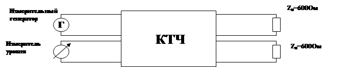 где Получаем Вывод: отклонение во времени ОЗ удовлетворяют нормам ВСС(ЕАСС). Измерения ОЗ производятся на частоте 800Гц(1020)Гц в режиме 4 Пр Ок по методу разности уровней. В качестве измерительных приборов используют либо встроенный генератор и измеритель уровня каналообразующей аппаратуры, либо измерительные генераторы и измерители уровня комплектов П-321,П-321М, П-322, П-326. Схема измерений:
