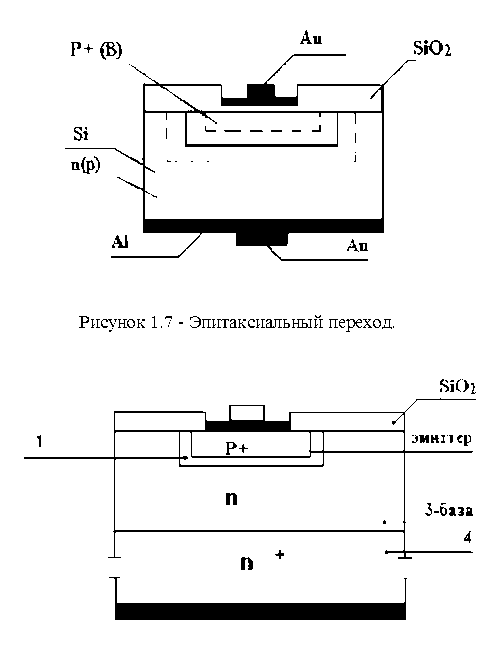 1.3.4 Эпитаксиальные переходы.Эпитаксиальные переходы образуются ориентированным направлением слоя монокристаллического полупроводника на исходном монокристалле-подложке (рис. 1.7.).