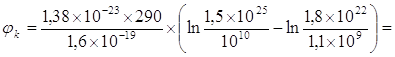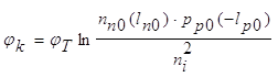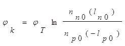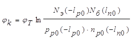 Электрическое поле может быть найдено из уравнения Пуассона: При этом контактная разность потенциалов равна:
