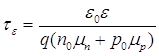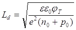 где τε – время диэлектрической релаксации; ε0 – диэлектрическая постоянная воздуха; ε – относительная диэлектрическая проницаемость полупроводника; q – заряд носителя заряда (электрона); n0, p0 – равновесные концентрации электронов и дырок в полупроводнике; μn, μp – подвижность электронов и дырок в полупроводнике. При резком изменении типа проводимости (рис. 1.1.б) диффузионные токи велики, и для их компенсации необходимо существенное нарушение электронейтральности (1.1.1). Изменение потенциала по глубине x полупроводника происходит по