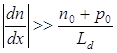 где При этом электрическая нейтральность существенно нарушается, если на дебаевской длине изменение результирующей концентрации примеси велико. Таким образом нейтральность нарушается при условии: В состоянии термодинамического равновесия при отсутствии вырождения[5] справедлив закон действующих масс: При условии (1.1.3) правая часть (1.1.2) достигает минимума при где Переходы, в которых изменение