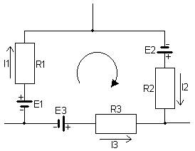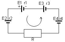Рис.8 Например, полная цепь содержит несколько источников тока, ЭДС которых равны E1,E2,E3 а внутренние сопротивления—r1,r2,r3, соответственно. ЭДС, действующая в цепи, равна: eб=e1 -e2+e3-e4 Сопротивление батареи равно: r,, = r, + r, + r, + г. При этом учитываем, что положительными являются те ЭДС, которые повышают потенциал в направлении обхода цепи, т.е. направление обхода цепи совпадает с переходом внутри источника от отрицательного полюса источника к положительному. Последовательное соединение источников тока применяется в тех случаях, когда нужно повысить напряжение на внешней цепи, причем сопротивление внешней цепи велико по сравнению с внутренним сопротивлением одного источника. Рис. При параллельном соединении источников все их положительные полюсы присоединены к одному проводнику, а отрицательные—к другому. Полная ЭДС цепи (всей батареи равна ЭДС одного источника: eб= e,а внутреннее сопротивление батареи равно: Rб=r/n где п — число параллельно соединенных источников. При параллельном соединении ток одного источника электрической энергии уже не проходит через другие, и поэтому каждый заряд получает энергию только в одном источнике. Сопротивление батареи меньше сопротивления одного источника, так как через каждый источник электрической энергии проходит только часть зарядов, перемещающихся во внешней цепи. Закон Ома для полной цепи при параллельном соединении одинаковых источников тока записывается в виде: I=e/(R+r/n) Если заменить один источник тока батареей параллельно соединенных источников, то ток в цепи возрастает. Параллельное соединение источников тока применяется в тех случаях, когда нужно усилить ток во внешней цепи, не изменяя напряжения, причем сопротивление внешней цепи мало по сравнению с сопротивлением одного источника. Если ЭДС источников различны, то для источников тока напряжений и ЭДС в различных участках цепи удобно пользоваться правилами Кирхгофа, сформулированными в 1847 г. немецким Физиком Густавом Робертом Кирхгофом (1824-1887). 1. Первое правило (правило узлов). Алгебраическая сумма сил токов, сходящихся в любом узле, равна нулю: SIi=0 i= 1 где п — число проводников, сходящихся в узле. Узлом в разветвленной цепи называется точка, в которой сходится не менее трех проводников. Токи, текущие к узлу, считаются положительными, а токи, текущие от узла, отрицательными. Рис.
