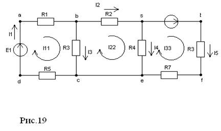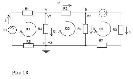 значение: I1+I2-I3=0 I3+I4+I5=0 I1*(12+30)-I2*15=50 I3*24+I2*15-I4*18=0 I4*18-I5*30-I5*30=50 2.3 Определение всех токов и напряжений методами контурных токов.