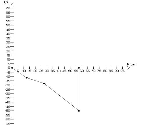 Va=0 Vb=Va-I1*R1= -12.05 B (12;-12.0564) R=12 (Ом) Vc=Vb-I3*R3= -19.8579 C (27;-19.8579) R=R+15 (Ом) Vd=Vc-I1*R6= -50.02 D (57;-50.02) R=R+30 (Ом) Va=Vd+E1= 0 A (57;0) R=57 (Ом)