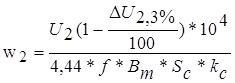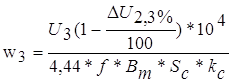 Число витков на вторичной обмотке подключенной непосредственно к нагрузке H3 :