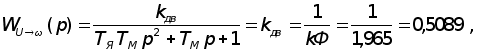 где Udном - номинальное напряжение на выходе тиристорного преобразователя; UСИФУmax - максимальное входное напряжение СИФУ. Коэффициент передачи обратной связи по скорости: