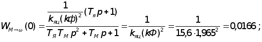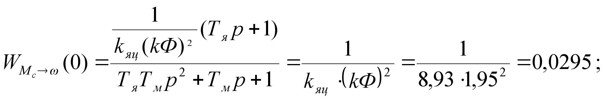 где w0 - скорость холостого хода двигателя (принимаем её как максимальную). Коэффициент передачи обратной связи по току: