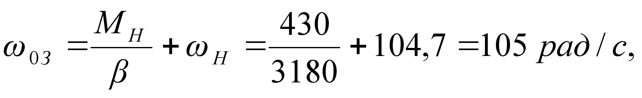 Падение скорости равно (Dw): Dw=WMc®w(p)ЧMн=0,0295Ч430=12,66 рад/с. Значение скорости при номинальном моменте (wн):wн=w0-Dw=112,8-12,66=100,14 рад/с. Статическую характеристику замкнутой системы построим по двум точкам, используя значение номинальной скорости и жёсткости. wн=104,7 рад/с,