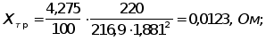 где Uкр - реактивная составляющая напряжения короткого замыкания; Uкр=UкЧ0,95=4,5Ч0,95=4,275. Находим реактивное сопротивление трансформатора: