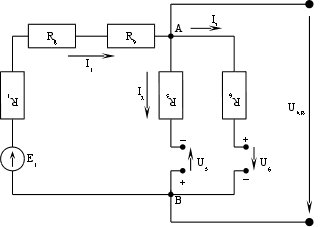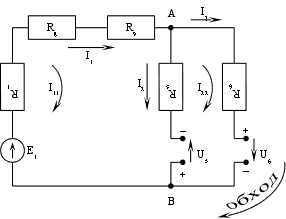 К узлам А и В подводится напряжение UAB – узловое, направление которого выбирается произвольно.