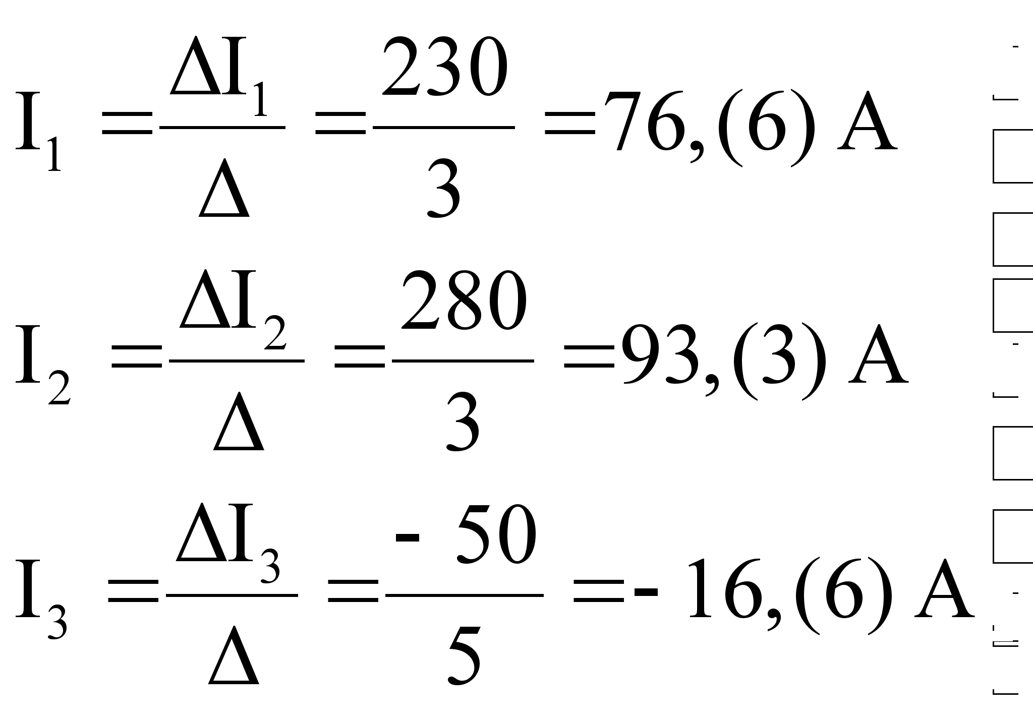 Определим Δ, ΔI1, ΔI2, ΔI3 по формулам:
