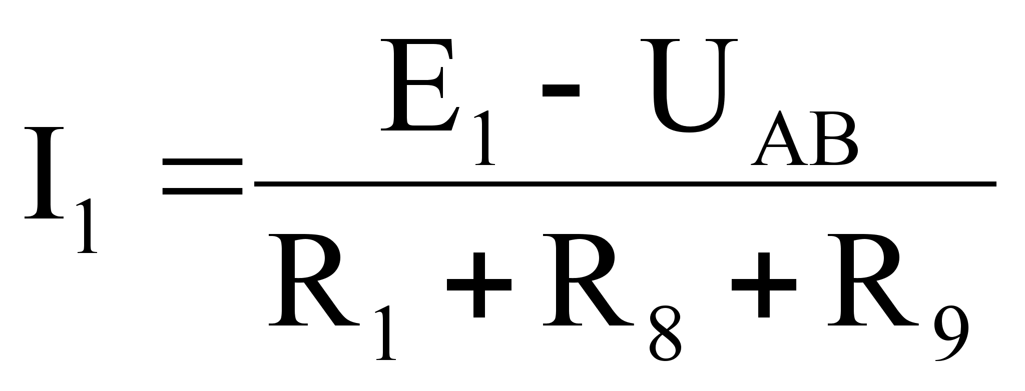 Е1=110 В R1=0,2 Ом R8=R9=0,4 Ом R5=R6=1 Ом U5=60 В U6=50 В Найти: токи в ветвях тремя методами. Решение: