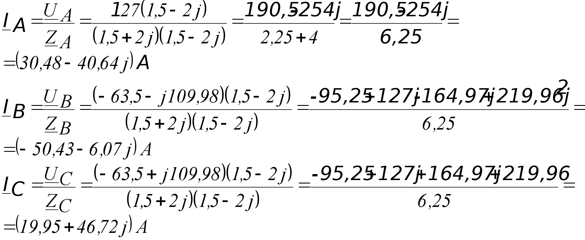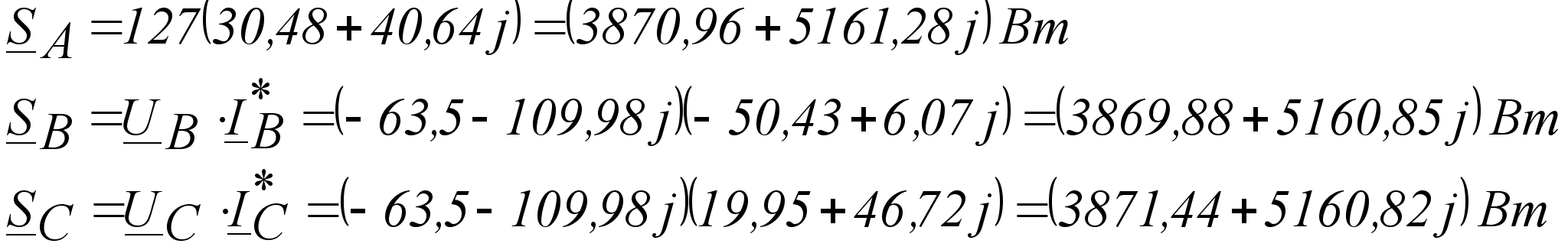 Токи в ветвях определим по уравнениям (2), (3), (4):