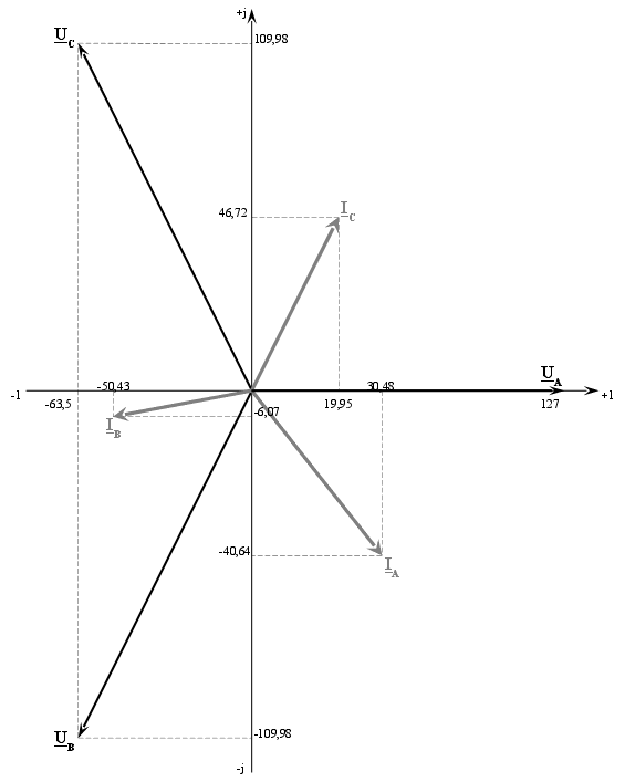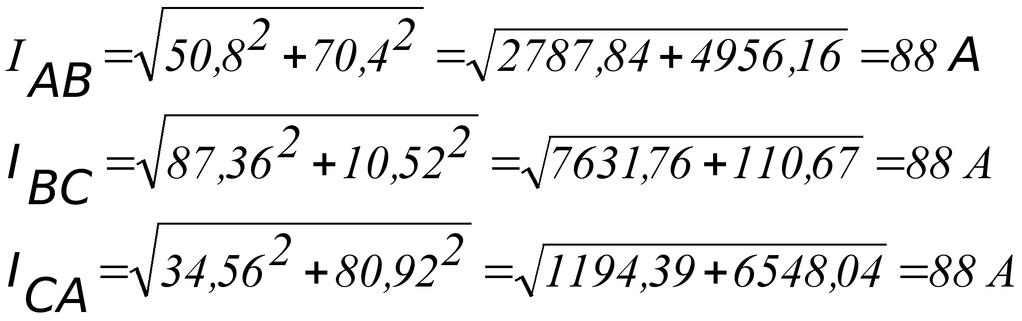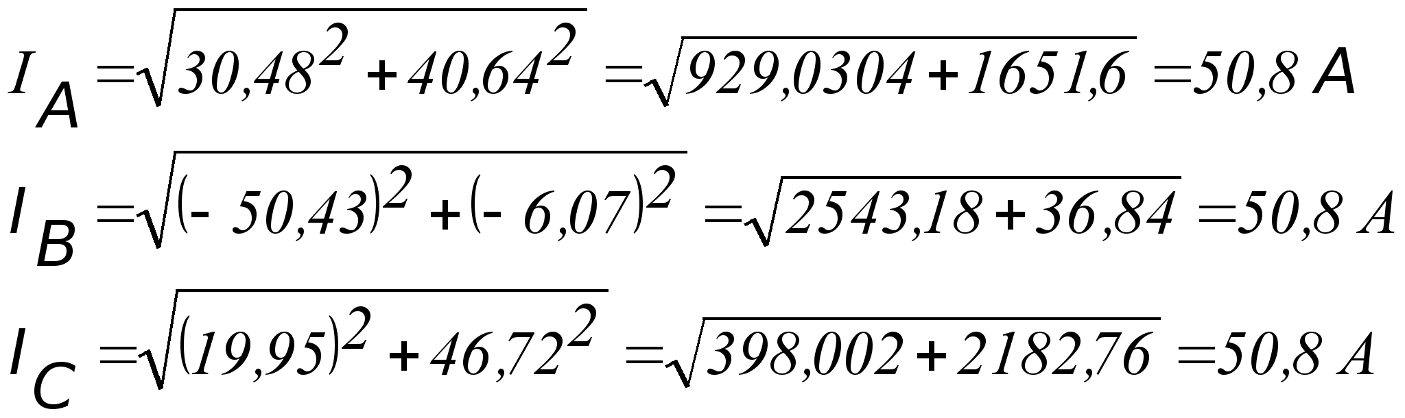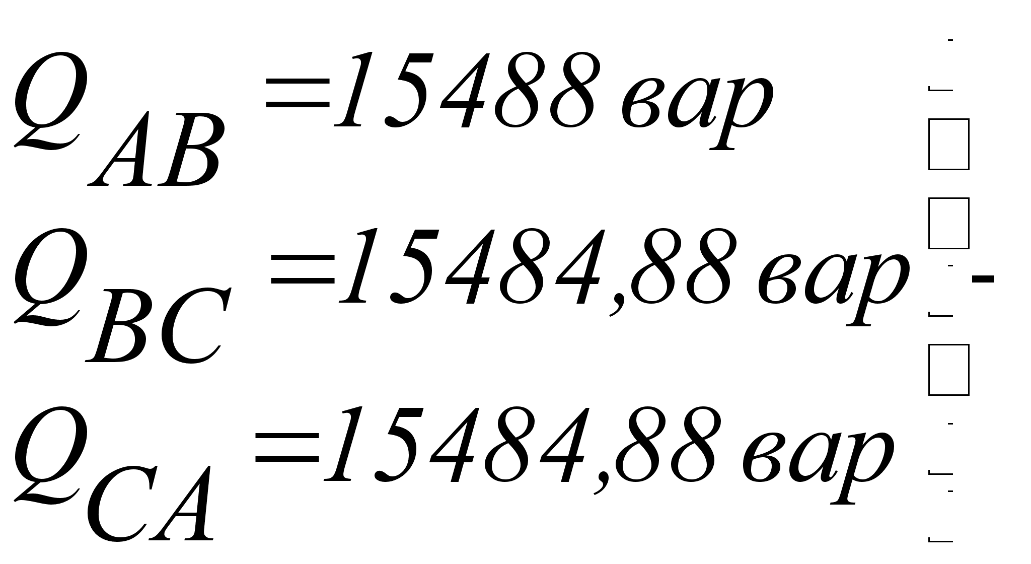 В случае симметричного приемника действующие значения всех линейных и фазных токов одинаковы, т.е. Iп= Iф IА= IВ= IС= IП=50,8 А