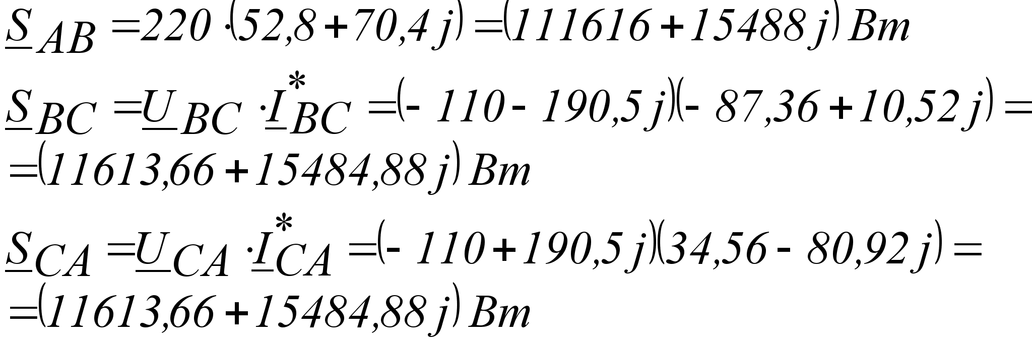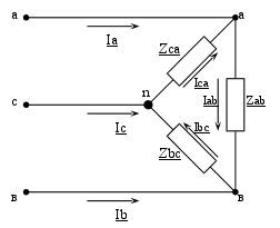 UAB, UBC, UCA – линейные напряжения; ZA, ZB, ZC –фазные сопротивления нагрузок;