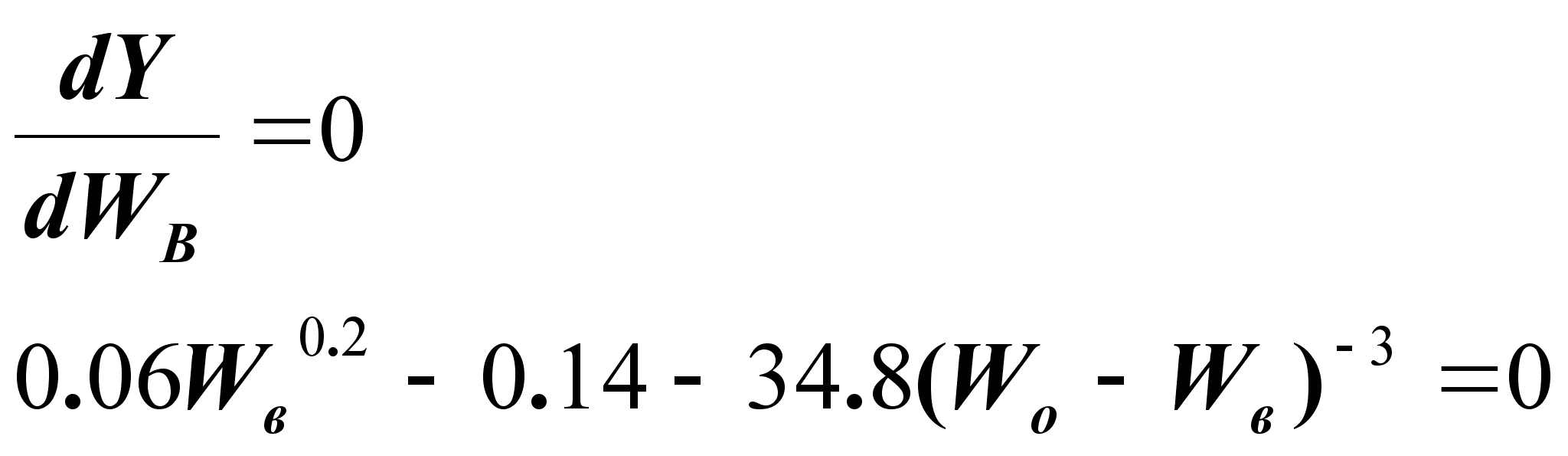 Для определения Wв, обращающей целевую функцию в min, проведем соответствующие вычисления /32/: