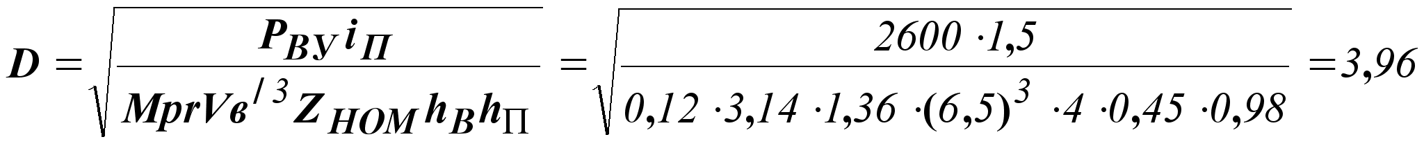 где: hв, hп - к.п.д. ветроколеса и передачи; V/ - математическое ожидание скорости ветра в рабочем диапазоне, м/сек. r - плотность воздуха кг/м3, r = 1,36 кг/м3 / 21 /. Для трехлопастного ветроколеса hв = 0,45 /43/. К.П.Д. передачи принимаем ηп = 0,98 /21/. Расчет ведем для генератора с nг = 500 об/мин. Рабочий диапазон скоростей ветра 4...16 м/с /38/. Для этого диапазона Vв = 6,5 м/с, iп = 1,5.