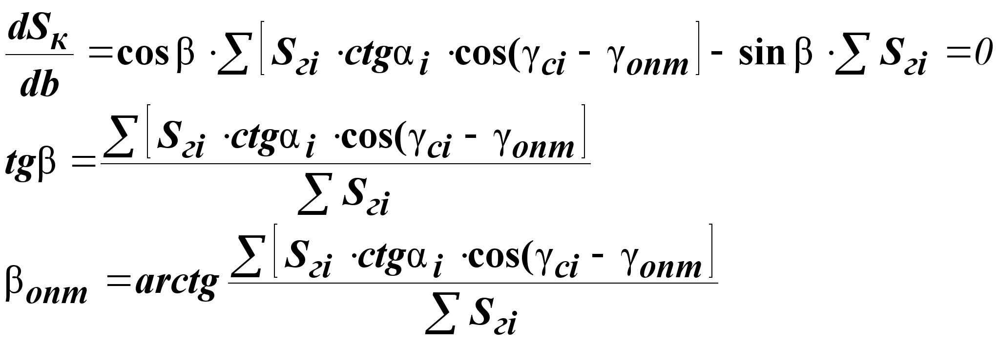 Как видно из (4.1.3.) суммарная годовая плотность солнечного излучения на фиксированный коллектор зависит от двух параметров g и b. Оптимальное значение угла g определяется из равенства /32/:
