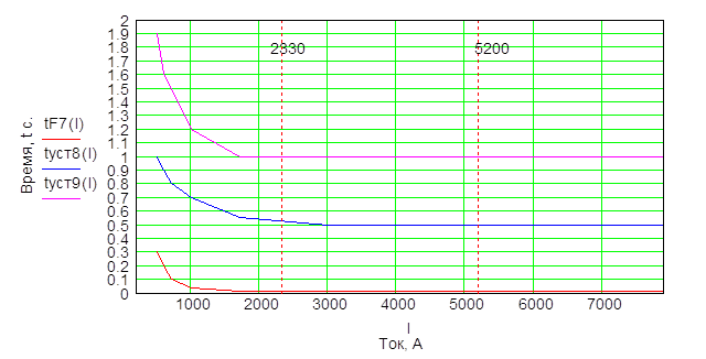 селективность предохранителя F7 и комплекта защиты РЗ-8 проведём после