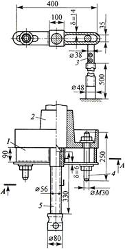 Рис. 3.1. Лапчатый съемник: 1 и 2 — рукоятки; 3 — гайка; 4 — лапы съемника; 5— шкив А-А