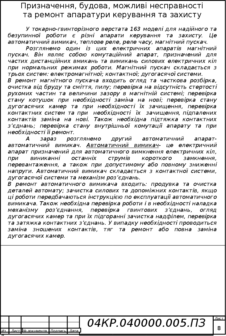 Реферат: Ремонт, наладка, защитной аппаратуры токарно-винторезного станка 163 модели