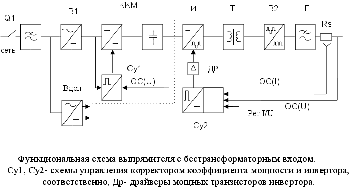 2.Импульсные методы передачи напряжения и регулирования (из схемы видно, что регулирование осуществляется в инверторе).