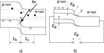 Когда СЭ освещается, поглощенные фотоны генерируют неравновесные