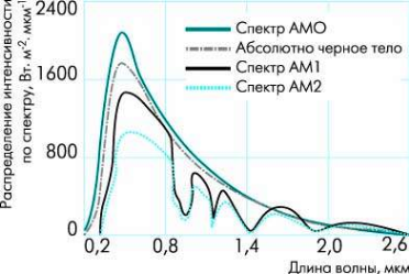 в различных условиях. Верхняя кривая (АМ0) соответствует солнечному спектру за